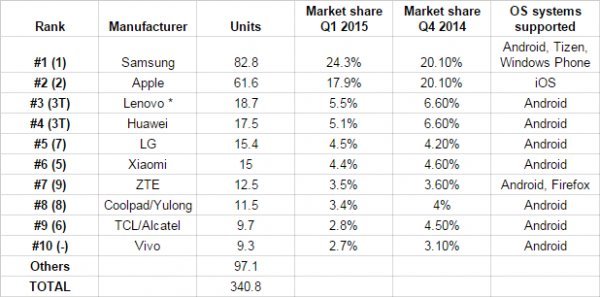 根据去年第四季度的报告,当时排在第十名的并非vivo,而是索尼,不过现在索尼的销量已经被微软Lumia赶超了,即便这样,微软仍然没有出现在此次的排行榜中。